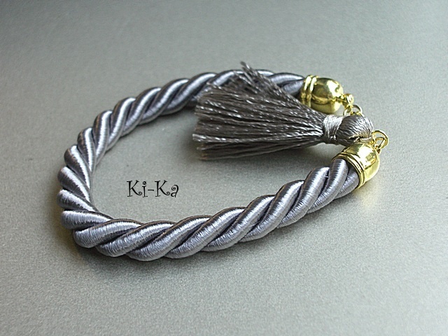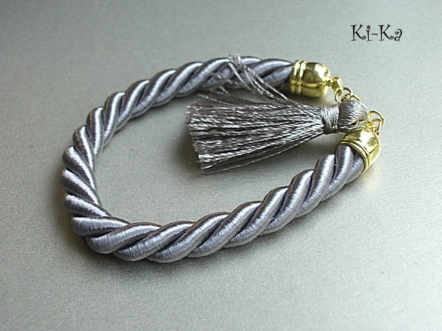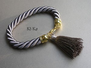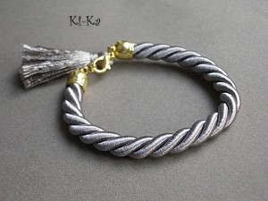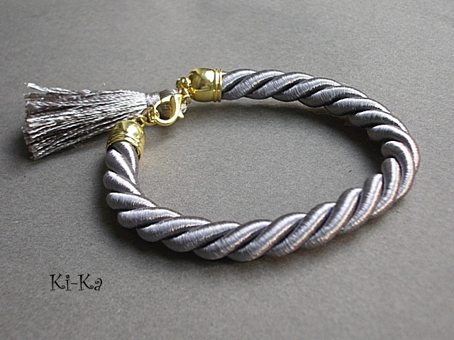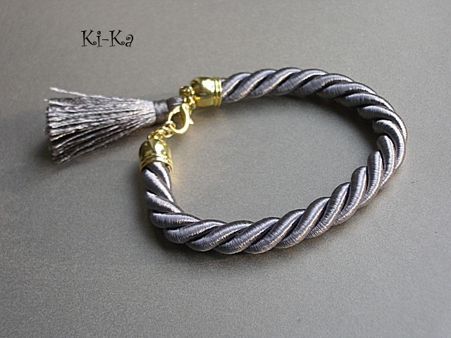 Bransoletka wykonana z satynowego sznurka, chwostu oraz elementów w kolorze złota. Pasuje na nadgarstek 15-16,5m. Biżuteria ozdobnie zapakowana. Zdjęcie pierwsze przedstawia przykładowy set. Cena dotyczy bransoletki ze sznurka