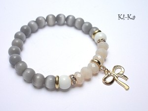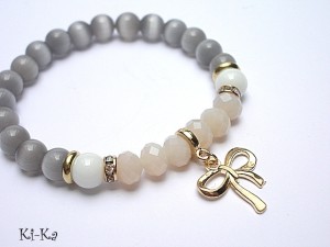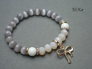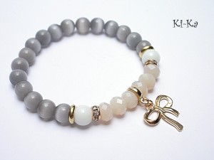 Bransoletka wykonana z kamieni - uleksyt [8mm] , kryształków [6x8mm], przekładek wysadzanych kryształkami oraz elementów w kolorze tzw. różowego złota. Bransoletka na gumce silikonowej. Pasuje na nadgarstek 15,5-16,5cm. Biżuteria ozdobnie zapakowana. Możliwość dopasowania bransoletki do nadgarstka - wcześniej prosimy o kontakt.