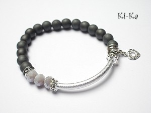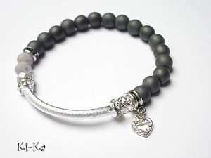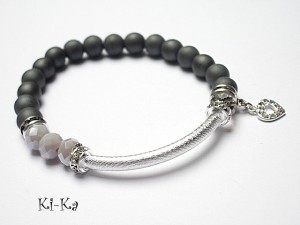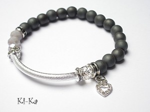 PROJEKT AUTORSKI . Bransoletka wykonana z naturalnych kamieni - matowe hematyty [8mm], kryształków, zawieszki wysadzanej cyrkoniami ,ozdobnego elementu wysadzanego kryształkami oraz elementów w kolorze srebrnym. Bransoletka pasuje na nadgarstek 16,5-18cm. Możliwość dopasowania do nadgarstka - wcześniej prosimy o kontakt. Biżuteria ozdobnie zapakowana.