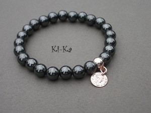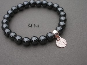 Bransoletka wykonana z naturalnych minerałów - hematyt [8mm] oraz elementów w kolorze różowego złota. Bransoletka na gumce silikonowej. Pasuje na nadgarstek 15-16,5cm. Biżuteria ozdobnie zapakowana. Bransoletka może stanowić komplet z innymi bransoletkami dostępnymi w naszej galerii - przykładowe zdjęcia.