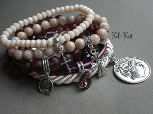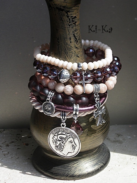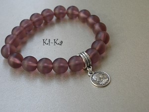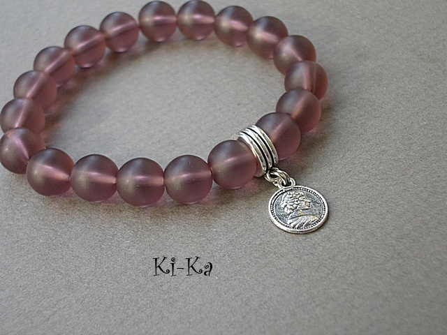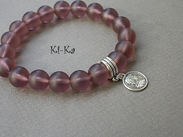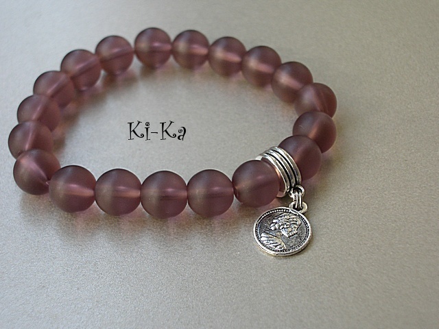 Bransoletka wykonana ze szklanych, matowych kuleczek [10mm] oraz elementów w kolorze srebra. . Pasuje na nadgarstek 15 -16,5cm . Bransoletka na gumce silikonowej. Biżuteria ozdobnie zapakowana. Bransoletka może stanowić komplet z innymi bransoletkami dostępnymi w naszej galerii - przykładowe zdjęcia.