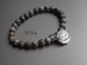 Bransoletka wykonana z kuleczek jaspisu oceanicznego [8mm] oraz elementów w kolorze srebra. Bransoletka na gumce silikonowej. Pasuje na nadgarstek 15,5-17cm. Biżuteria ozdobnie zapakowana. Zdjęcie pierwsze przedstawia przykładowy set. Cena dotyczy bransoletki z szarego jaspisu oceanicznego z przywieszoną monetką