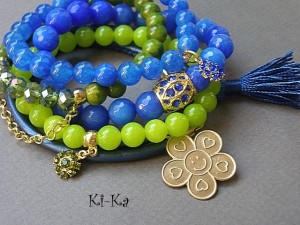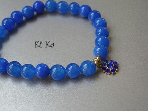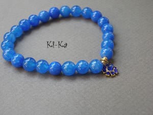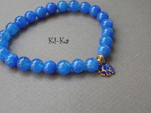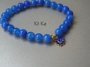 Bransoletka wykonana z naturalnych minerałów -jadeit [8mm] oraz elementów metalowych w kolorze złota.Pasuje na nadgarstek 15-16cm. Bransoletka na gumce silikonowej. Biżuteria ozdobnie zapakowana. Bransoletka może stanowić komplet z innymi bransoletkami - przykładowe zdjęcia.