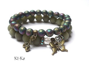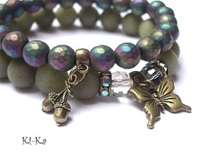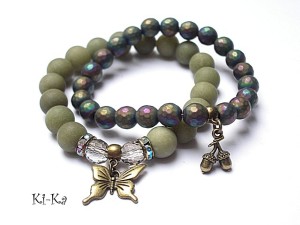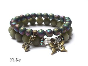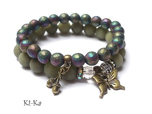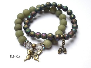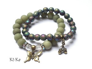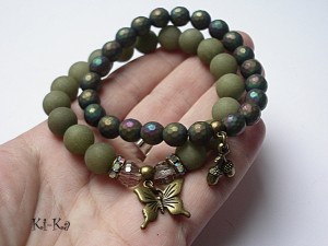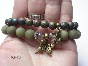 Komplet dwóch bransoletek wykonany z naturalnych kamieni - matowy jadeity [10mm], fasetowane hematyty [8mm] oraz elementów w kolorze starego złota. Bransoletki pasują na nadgarstek 16-17cm. Bransoletki na gumce silikonowej. Możliwość dopasowania do nadgarstka - wcześniej prosimy o kontakt. Biżuteria ozdobnie zapakowana