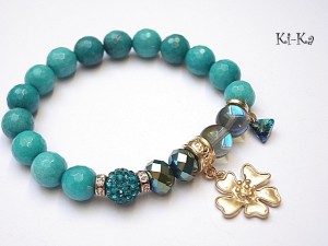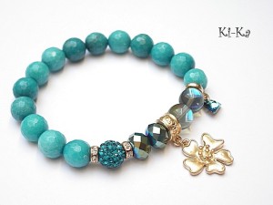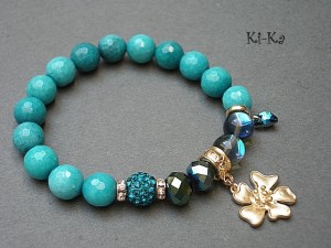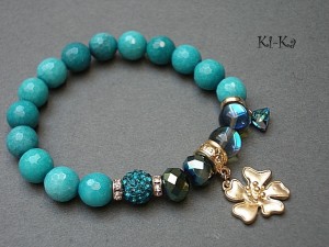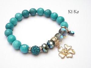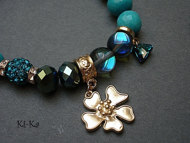 PROJEKT AUTORSKI. Bransoletka z kolekcji "RICH" charakteryzującej się wykorzystaniem w jednej bransoletce - mixu minerałów, kryształków, elementów ozdobnych, kryształków Swarovskiego, cyrkonii, przywieszek etc. . Model jest w sam sobie na tyle strojny, że nie wymaga uzupełnienia go dodatkowymi akcentami. Bransoletka wykonana z naturalnych kamieni - jadeity fasetowane [10mm], kwarc mystic [10mm], przekładki shamballa wysadzanej kryształkami Swarovskiego, kryształków [8 x 10mm], przekładek wysadzanych kryształkami, przywieszki z kryształkiem Swarovskiego oraz elementów w kolorze tzw. różowego złota. Bransoletka na gumce silikonowej. Pasuje na nadgarstek 15,5-16,5cm. Biżuteria ozdobnie zapakowana. Możliwość dopasowania bransoletki do nadgarstka - wcześniej prosimy o kontakt.