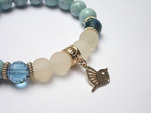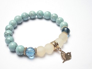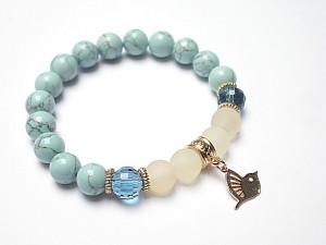PROJEKT AUTORSKI. Bransoletka z kolekcji "RICH" charakteryzującej się wykorzystaniem w jednej bransoletce - mixu minerałów, kryształków, elementów ozdobnych, kryształków Swarovskiego, cyrkonii, przywieszek etc. . Model jest w sam sobie na tyle strojny, że nie wymaga uzupełnienia go dodatkowymi akcentami. Bransoletka wykonana z kamieni naturalnych - howlit [10mm], szkła matowego [10mm], kryształków fasetowanych [10mm], platerowanej zawieszki oraz elementów w kolorze tzw. różowego złota. Bransoletka na gumce silikonowej. Pasuje na nadgarstek 16-17cm. Biżuteria ozdobnie zapakowana. Możliwość dopasowania bransoletki do nadgarstka - wcześniej prosimy o kontakt.