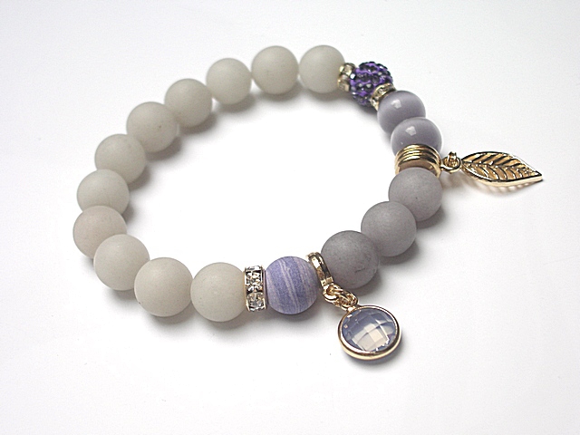 Bransoletka wykonana z kamieni - matowe jadeity [10mm], uleksyty [10mm], kuleczki prasowanego turkusu [10mm], kuleczki shamballa wysadzanej kryształkami Swarovskiego [10mm] ,przywieszki w okuciu oraz elementów metalowych w kolorze tzw. różowego złota. Bransoletka na gumce silikonowej. Pasuje na nadgarstek 15,5-16,5cm. Biżuteria ozdobnie zapakowana. Możliwość dopasowania bransoletki do nadgarstka - wcześniej prosimy o kontakt.