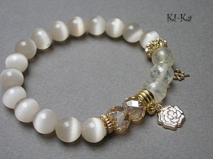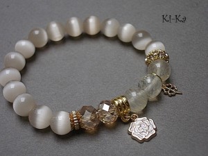 PROJEKT AUTORSKI. Bransoletka z kolekcji "RICH" charakteryzującej się wykorzystaniem w jednej bransoletce - mixu minerałów, kryształków, elementów ozdobnych, kryształków Swarovskiego, cyrkonii, przywieszek etc. . Model jest w sam sobie na tyle strojny, że nie wymaga uzupełnienia go dodatkowymi akcentami. Bransoletka wykonana z kamieni - uleksyt [10mm], kwarc cytrynowy [10mm] przekładki wysadzanej kryształkami, kryształków [8 x 10mm] oraz elementów w kolorze złota. Bransoletka na gumce silikonowej. Pasuje na nadgarstek 15-16,5cm. Biżuteria ozdobnie zapakowana. Możliwość dopasowania bransoletki do nadgarstka - wcześniej prosimy o kontakt.