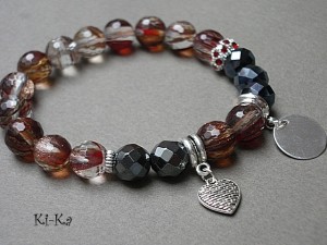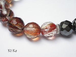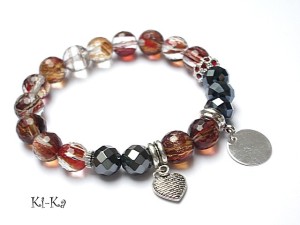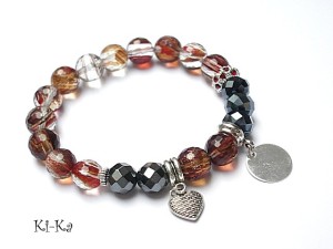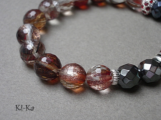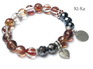 PROJEKT AUTORSKI. Bransoletka z kolekcji "RICH" charakteryzującej się wykorzystaniem w jednej bransoletce - mixu minerałów, kryształków, elementów ozdobnych, kryształków Swarovskiego, cyrkonii, przywieszek etc. . Model jest w sam sobie na tyle strojny, że nie wymaga uzupełnienia go dodatkowymi akcentami. Bransoletka wykonana z naturalnych kamieni -fasetowanych kuleczek kwarców w środku ze złotymi drobinkami [10mm ] - piękne kamienie ,zdjęcia nie oddają ich uroku ,fasetowanymi kuleczkami hematytów [10mm] przekładki wysadzanej kryształkami, kryształków [8 x 10mm] oraz elementów w kolorze srebrnym. Bransoletka na gumce silikonowej. Pasuje na nadgarstek 15,5 - 16,5cm. Biżuteria ozdobnie zapakowana. Możliwość dopasowania bransoletki do nadgarstka - wcześniej prosimy o kontakt