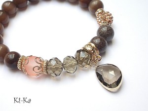 PROJEKT AUTORSKI. Bransoletka z kolekcji "RICH" charakteryzującej się wykorzystaniem w jednej bransoletce - mixu minerałów, kryształków, elementów ozdobnych, kryształków Swarovskiego, cyrkonii, przywieszek etc. . Model jest w sam sobie na tyle strojny, że nie wymaga uzupełnienia go dodatkowymi akcentami. Bransoletka wykonana z kamieni naturalnych - jadeity [10mm], uleksyt [10mm], szkła matowego [10mm], kryształków fasetowanych [8 x 10mm], przekladki shamballa wysadzanej kryształkami Swarovskiego, oraz elementów w kolorze tzw. różowego złota. Bransoletka na gumce silikonowej. Pasuje na nadgarstek 15,5-16,5cm. Biżuteria ozdobnie zapakowana. Możliwość dopasowania bransoletki do nadgarstka - wcześniej prosimy o kontakt.