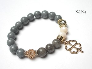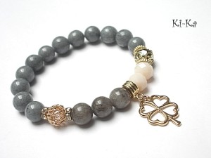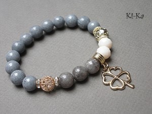 PROJEKT AUTORSKI. WŁASNOŚĆ KI-KA. Bransoletka z kolekcji RICH charakteryzującej się wykorzystaniem w jednej bransoletce - mixu minerałów, kryształków, elementów ozdobnych, kryształków Swarovskiego, cyrkonii, przywieszek etc. . Model jest w sam sobie na tyle strojny, że nie wymaga uzupełnienia go dodatkowymi akcentami. Bransoletka wykonana z naturalnych kamieni - jadeity [10mm],kryształki [10mm] oraz elementów w kolorze różowego złota złota. Bransoletka na gumce silikonowej. Pasuje na nadgarstek 16-17cm. Biżuteria ozdobnie zapakowana. Możliwość dopasowania bransoletki do nadgarstka - wcześniej prosimy o kontakt.
