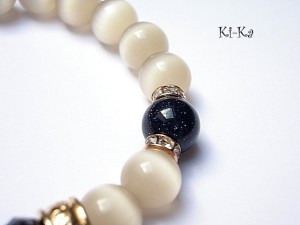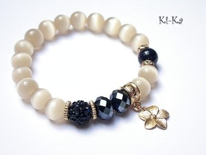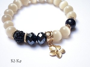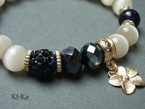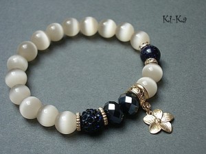 PROJEKT AUTORSKI. Bransoletka z kolekcji "RICH" charakteryzującej się wykorzystaniem w jednej bransoletce - mixu minerałów, kryształków, elementów ozdobnych, kryształków Swarovskiego, cyrkonii, przywieszek etc. . Model jest w sam sobie na tyle strojny, że nie wymaga uzupełnienia go dodatkowymi akcentami. Bransoletka wykonana z kamieni - uleksyt [10mm], noc kairu [10mm], kryształków [8 x 10mm], kuleczki shamballa wysadzanej kryształkami Swarovskiego oraz elementów w kolorze tzw. różowego złota. Bransoletka na gumce silikonowej. Pasuje na nadgarstek 15,5-16,5cm. Biżuteria ozdobnie zapakowana. Możliwość dopasowania bransoletki do nadgarstka - wcześniej prosimy o kontakt.