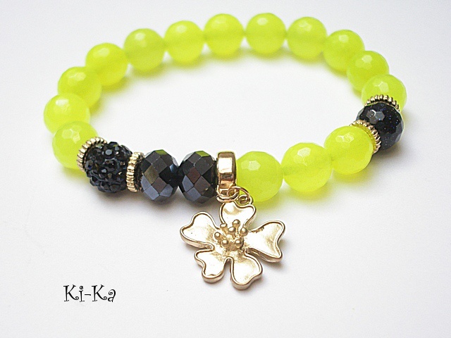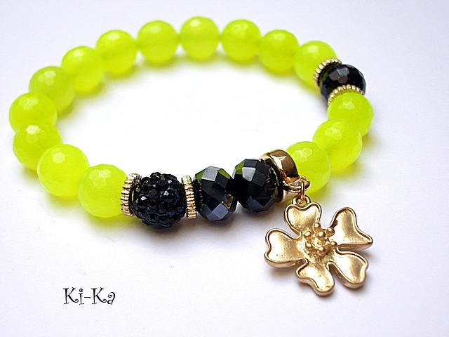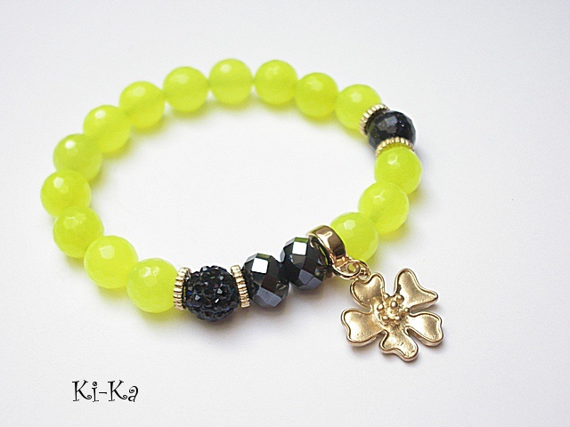 PROJEKT AUTORSKI. Bransoletka z kolekcji "RICH" charakteryzującej się wykorzystaniem w jednej bransoletce - mixu minerałów, kryształków, elementów ozdobnych, kryształków Swarovskiego, cyrkonii, przywieszek etc. . Model jest w sam sobie na tyle strojny, że nie wymaga uzupełnienia go dodatkowymi akcentami. Bransoletka wykonana z kamieni naturalnych - jadeitu [10mm], fasetowanej kuleczki nocy kairu [10mm] ,kryształków [10mm] ,kuleczki shamballa wysadzanej kryształkami Swarovskiego, oraz elementów w kolorze tzw. różowego złota. Bransoletka na gumce silikonowej. Pasuje na nadgarstek 16-17cm. Biżuteria ozdobnie zapakowana. Możliwość dopasowania bransoletki do nadgarstka - wcześniej prosimy o kontakt.