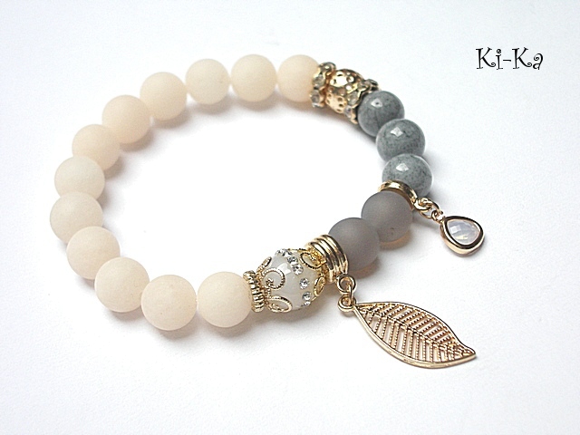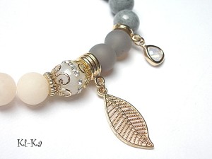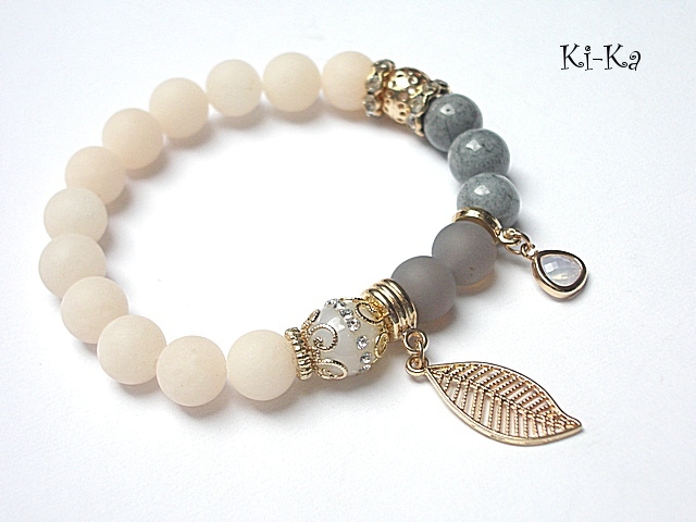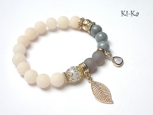 PROJEKT AUTORSKI. WŁASNOŚĆ KI-KA. KOPIOWANIE ZABRONIONE. Bransoletka z kolekcji RICH charakteryzującej się wykorzystaniem w jednej bransoletce - mixu minerałów, kryształków, elementów ozdobnych, kryształków Swarovskiego, cyrkonii, przywieszek etc. . Model jest w sam sobie na tyle strojny, że nie wymaga uzupełnienia go dodatkowymi akcentami. Bransoletka wykonana z naturalnych kamieni - matowe jadeity [10mm] ,jadeity [10mm] ,agaty wysadzane cyrkoniami [10mm] ,matowe szare agaty [10mm] , efektownej zawieszki ze szkła oraz elementów w kolorze tzw.różowego złota. Bransoletka na gumce silikonowej. Pasuje na nadgarstek 16-17cm. Biżuteria ozdobnie zapakowana. Możliwość dopasowania bransoletki do nadgarstka - wcześniej prosimy o kontakt