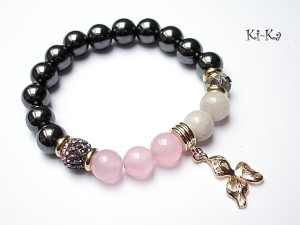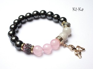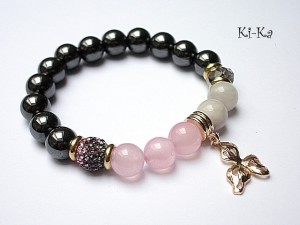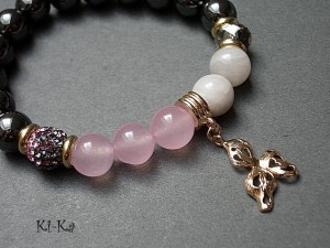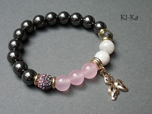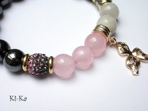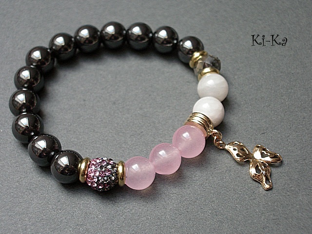 PROJEKT AUTORSKI. Bransoletka z kolekcji "RICH" charakteryzującej się wykorzystaniem w jednej bransoletce - mixu minerałów, kryształków, elementów ozdobnych, kryształków Swarovskiego, cyrkonii, przywieszek etc. . Model jest w sam sobie na tyle strojny, że nie wymaga uzupełnienia go dodatkowymi akcentami. Bransoletka wykonana z kamieni - hematyty [10mm], jadeity [10mm] , kryształkiem [10mm] ,kuleczką shamballa wysadzaną kryształkami Swarovskiego [10mm] oraz elementów w kolorze tzw.różowego złota. Bransoletka na gumce silikonowej. Pasuje na nadgarstek 15,5-16,5cm. Biżuteria ozdobnie zapakowana. Możliwość dopasowania bransoletki do nadgarstka - wcześniej prosimy o kontakt.