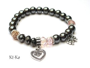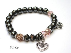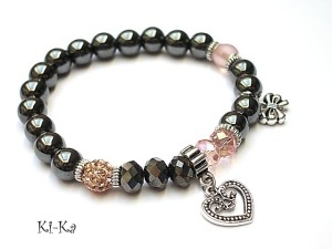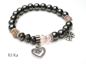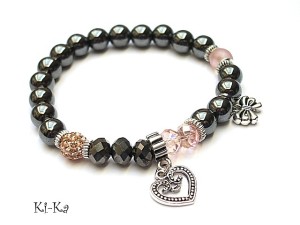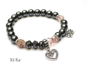 PROJEKT AUTORSKI. Bransoletka z kolekcji "RICH" charakteryzującej się wykorzystaniem w jednej bransoletce - mixu minerałów, kryształków, elementów ozdobnych, kryształków Swarovskiego, cyrkonii, przywieszek etc. . Model jest w sam sobie na tyle strojny, że nie wymaga uzupełnienia go dodatkowymi akcentami. Bransoletka wykonana z naturalnych kamieni - hematyt [8mm], matowej szklanej kuleczki [8mm] ,kryształków [8mm] ,kuleczki shamballa wysadzanej kryształkami swarovskiego [8mm] oraz elementów w kolorze srebrnym. Bransoletka na gumce silikonowej. Pasuje na nadgarstek 16-17cm. Biżuteria ozdobnie zapakowana. Możliwość dopasowania bransoletki do nadgarstka - wcześniej prosimy o kontakt.