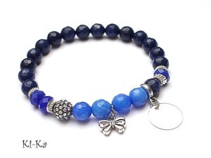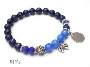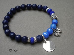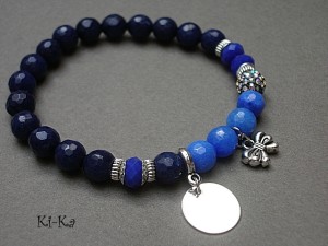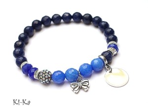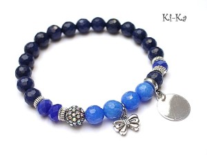 PROJEKT AUTORSKI. WSZELKIE INNE PODOBNE MODELE TO KOPIE NARUSZAJĄCE PRAWA AUTORSKIE Bransoletka z kolekcji "RICH" charakteryzującej się wykorzystaniem w jednej bransoletce - mixu minerałów, kryształków, elementów ozdobnych, kryształków Swarovskiego, cyrkonii, przywieszek etc. . Model jest w sam sobie na tyle strojny, że nie wymaga uzupełnienia go dodatkowymi akcentami. Bransoletka wykonana z naturalnych kamieni - jadeit [8mm] w kolorze blado niebieskim ,kryształki [8mm] ,ekskluzywnej przekładki wysadzanej cyrkoniami [8mm] oraz elementów w kolorze srebrnym. Bransoletka na gumce silikonowej. Pasuje na nadgarstek 16-18cm. Biżuteria ozdobnie zapakowana. Możliwość dopasowania bransoletki do nadgarstka - wcześniej prosimy o kontakt.