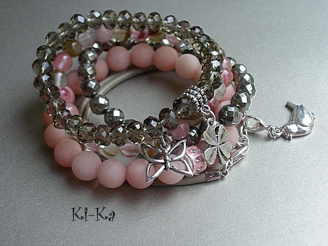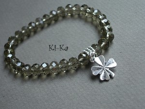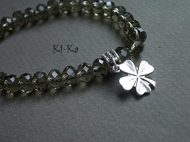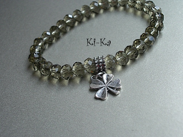Bransoletka wykonana z fasetowanych szklanych oponek [8mm] oraz elementów w kolorze srebra. . Pasuje na nadgarstek 15 -16,5cm . Bransoletka na gumce silikonowej. Biżuteria ozdobnie zapakowana. Bransoletka może stanowić komplet z innymi bransoletkami dostępnymi w naszej galerii - przykładowe zdjęcia.
