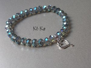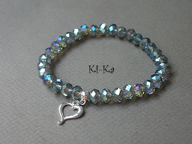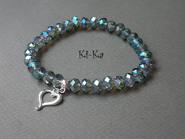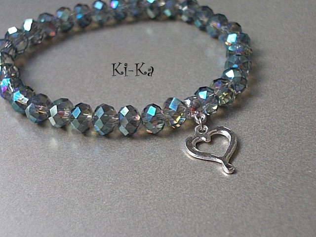 Bransoletka wykonana z kryształków [szkło bardzo dobrej jakości] oraz elementów w kolorze srebra. Pasuje na nadgarstek 15,5- 16,5cm. Bransoletka na gumce silikonowej. Biżuteria ozdobnie zapakowana. Bransoletka może stanowić komplet z innymi bransoletkami dostępnymi w naszej galerii - przykładowe zdjęcia.