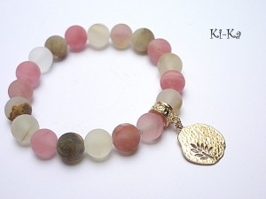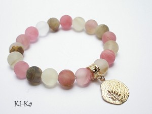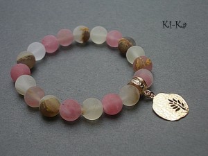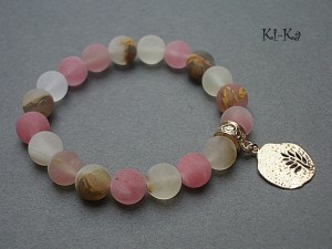 Bransoletka wykonana z kamieni naturalnych - matowy kwarc tygrysi [10mm] oraz elementów w kolorze jasnego złota. Bransoletka na gumce silikonowej. Pasuje na nadgarstek 16-17cm. Biżuteria ozdobnie zapakowana. Możliwość dopasowania bransoletki do nadgarstka - wcześniej prosimy o kontakt.