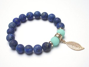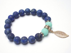 Bransoletka wykonana z kamieni naturalnych - matowy lapis lazuli z pirytem [10mm], jadeit matowy [10mm] oraz elementów metalowych w kolorze tzw. różowego złota. Bransoletka na gumce silikonowej. Pasuje na nadgarstek 16-17cm. Biżuteria ozdobnie zapakowana. Możliwość dopasowania bransoletki do nadgarstka - wcześniej prosimy o kontakt.