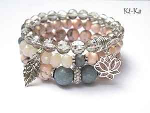 Komplet trzech bransoletek wykonanych z naturalnych minerałów: howlity [8 i 10mm], kryształków [8 x 6mm oraz 10mm], agatów fasetowanych [12mm], ekskluzywnej przekładki wysadzanej cyrkoniami oraz elementów metalowych w kolorze srebra. Bransoletki pasują na nadgarstek 15,5-16,5cm. Biżuteria ozdobnie zapakowana. Możliwość dopasowania bransoletek do nadgarstka - wcześniej prosimy o kontakt.