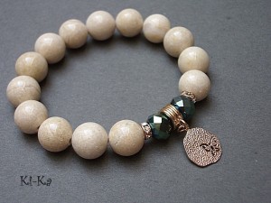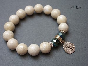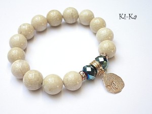 Bransoletka wykonana z kamieni naturalnych - marmur [12mm] ,kryształki [10mm] oraz elementów w kolorze tzw.różowego złota. Bransoletka na gumce silikonowej. Pasuje na nadgarstek 16-17cm. Biżuteria ozdobnie zapakowana. Możliwość dopasowania bransoletki do nadgarstka - wcześniej prosimy o kontakt.