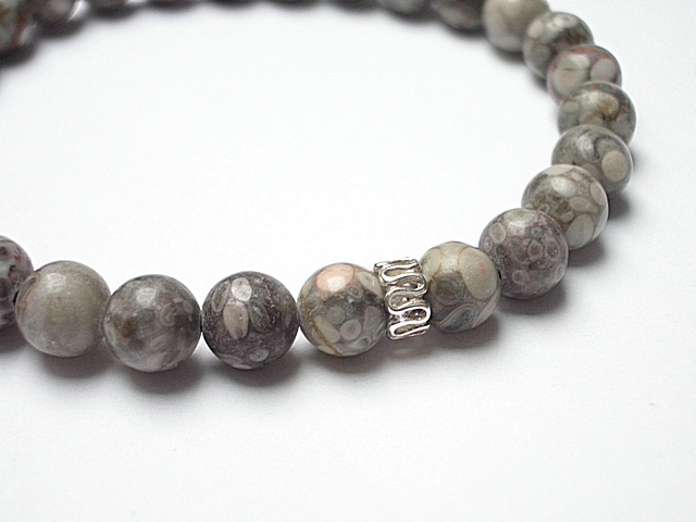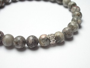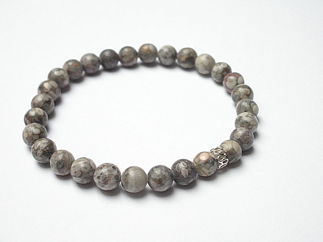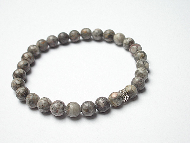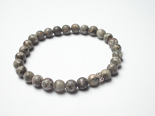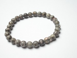 Męska bransoletka wykonana z kamieni naturalnych -jaspis [8mm] oraz przekładki z brązu platerowanego srebrem pr. 925. Bransoletka na gumce silikonowej .Obwód bransoletki 20cm. Biżuteria ozdobnie zapakowana.