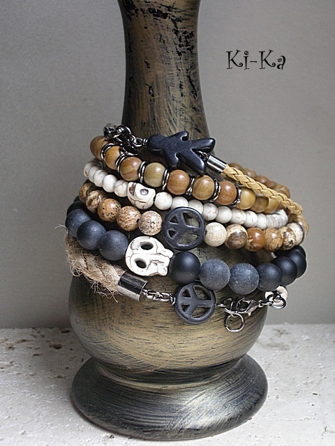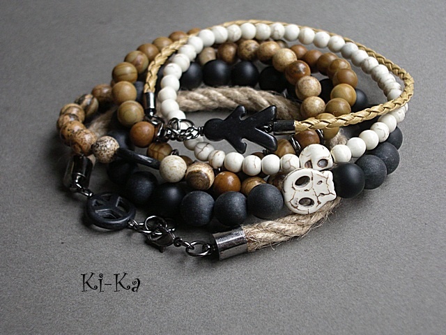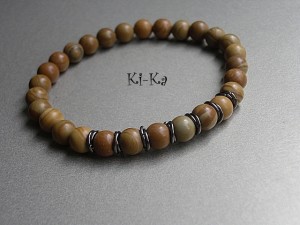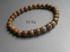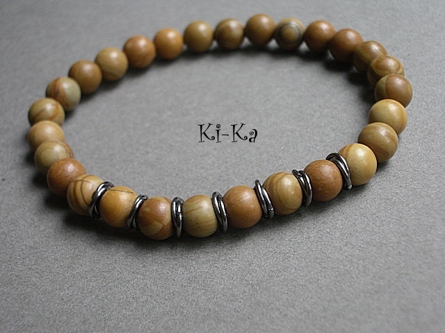 Męska bransoletka wykonana z kamieni naturalnych kamieni - jaspis drzewny [8mm]. Bransoletka na gumce silikonowej .Obwód bransoletki 20cm.Bransoletka może stanowić komplet z innymi bransoletkami -przykładowe zdjęcia. Biżuteria ozdobnie zapakowana.