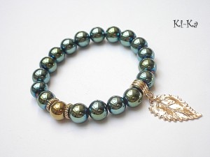 Bransoletka wykonana z kamieni naturalnych kamieni - hematyty [10mm] oraz elementów w kolorze złotym. Bransoletka na gumce silikonowej. Pasuje na nadgarstek 15-16,5cm. Biżuteria ozdobnie zapakowana. Możliwość dopasowania bransoletki do nadgarstka - wcześniej prosimy o kontakt.