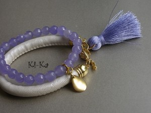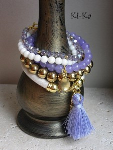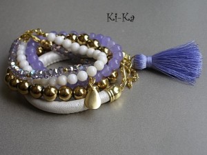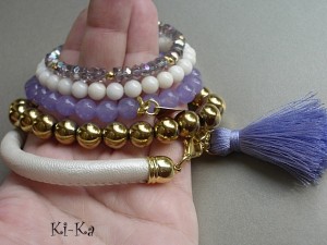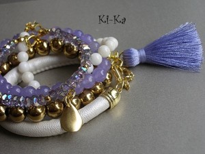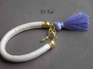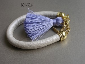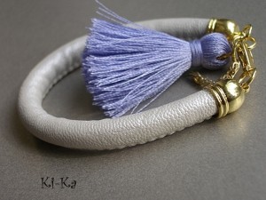Bransoletka wykonana z rzemienia z powłoką perłową, elementów w kolorze złota oraz satynowego chwościka. Pasuje na nadgarstek 16-17cm. Biżuteria ozdobnie zapakowana. Bransoletka może stanowić komplet z innymi bransoletkami - przykładowe zdjęcia