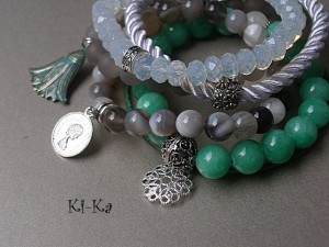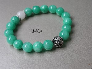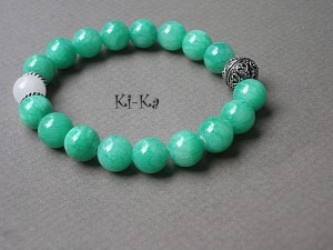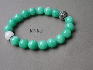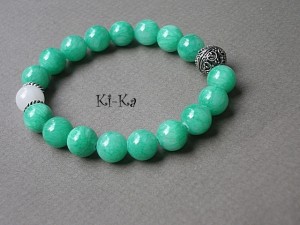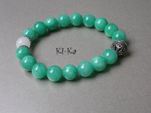 Bransoletka wykonana z naturalnych minerałów [jadeity 10mm] oraz elementów w kolorze srebra. Pasuje na nadgarstek 15,5- 16,5cm. Bransoletka na gumce silikonowej. Biżuteria ozdobnie zapakowana. Bransoletka może stanowić komplet z innymi modelami - przykładowe zdjęcia