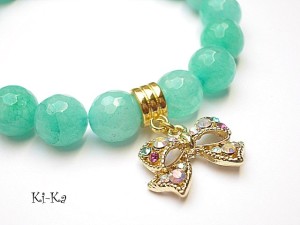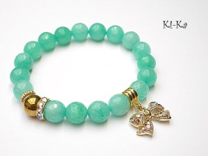 Bransoletka wykonana z naturalnych kamieni - jadeity [10mm], hematyt [10mm], ekskluzywnej przywieszki wysadzanej cyrkoniami, przekładki wysadzanej kryształkami oraz elementów w kolorze złota. Bransoletka na gumce silikonowej. Pasuje na nadgarstek 15,5-16,5cm. Biżuteria ozdobnie zapakowana. Możliwość dopasowania bransoletki do nadgarstka - wcześniej prosimy o kontakt.