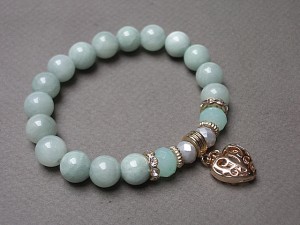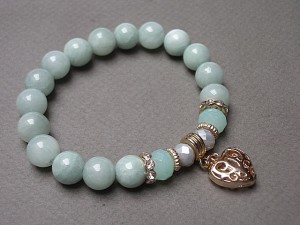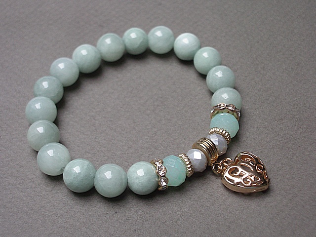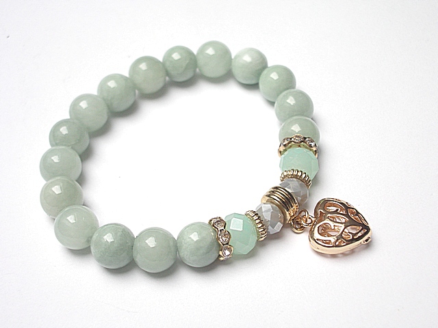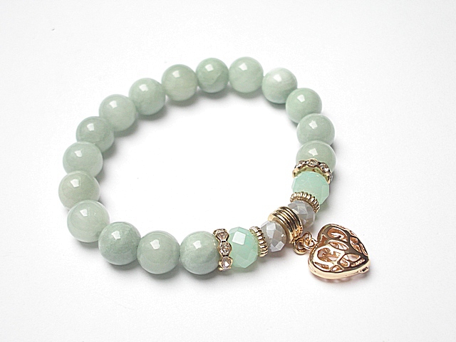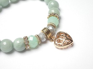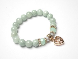PROJEKT AUTORSKI Bransoletka wykonana z kamieni naturalnych -jadeity [10mm] ,kryształki [10mm i 8mm] oraz elementów w kolorze tzw. różowego złota. Bransoletka na gumce silikonowej. Pasuje na nadgarstek 16-17cm. Biżuteria ozdobnie zapakowana. Możliwość dopasowania bransoletki do nadgarstka - wcześniej prosimy o kontakt.