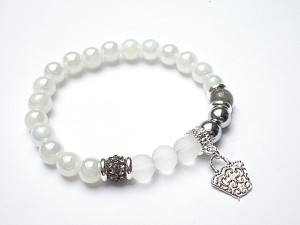 Bransoletka modułowa - każda jedna z tej serii będzie się dobrze komponowała z każdą inną bransoletką z serii "Modułowych" - przykładowe zdjęcia.Motyw przewodni tej serii -kolor białego srebra ,elementy diamentowane i satynowane. Bransoletka wykonana ze szklanych opalizujących kuleczek [8mm], szkła matowego, hematytu [8mm], marmuru [8mm], przekładki shamballa wysadzanej kryształkami Swarovskiego oraz metalowych elementów w kolorze jasnego srebra. Bransoletka pasuje na nadgarstek 16-17cm. Biżuteria ozdobnie zapakowana. Możliwość dopasowania do nadgarstka - wcześniej prosimy o kontakt.