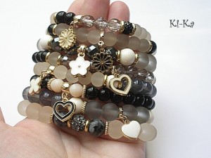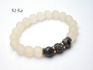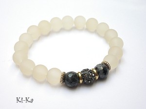 Bransoletka modułowa -każda jedna z tej serii będzie się dobrze komponowała z każdą inną bransoletką z serii "Modułowych " -przykładowe zdjęcia. Bransoletka wykonana z naturalnych kamieni - marmur fasetowane kuleczki larvikitu [10mm] ,kuleczki shamballa wysadzanej kryształkami Swarovskiego [10mm] ,szklanych matowych kuleczek w kolorze szampana [10mm] oraz metalowych elementów w kolorze jasnego złota. Bransoletka pasuje na nadgarstek 16-17cm. Biżuteria ozdobnie zapakowana. Możliwość dopasowania do nadgarstka - wcześniej prosimy o kontakt.