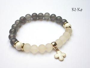 Bransoletka modułowa -każda jedna z tej serii będzie się dobrze komponowała z każdą inną bransoletką z serii "Modułowych " -przykładowe zdjęcia. Bransoletka wykonana ze szklanych kuleczek [8mm] ,szklanych matowych kuleczek [8mm] ,kuleczek muszli [8mm] oraz metalowych elementów w kolorze jasnego złota. Bransoletka pasuje na nadgarstek 16-17cm. Biżuteria ozdobnie zapakowana. Możliwość dopasowania do nadgarstka - wcześniej prosimy o kontakt.