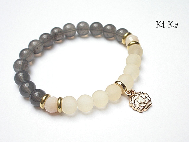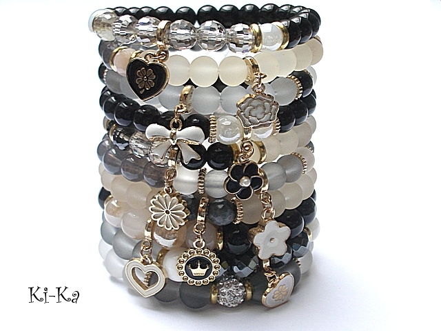 Bransoletka modułowa -każda jedna z tej serii będzie się dobrze komponowała z każdą inną bransoletką z serii "Modułowych " - przykładowe zdjęcia. Bransoletka wykonana ze szklanych kuleczek [8mm] , fasetowanych kryształków [8mm], szkła matowego [8mm oraz metalowych elementów w kolorze tzw. różowego złota. Bransoletka pasuje na nadgarstek 16-17cm. Biżuteria ozdobnie zapakowana. Możliwość dopasowania do nadgarstka - wcześniej prosimy o kontakt.