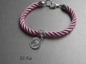 Bransoletka wykonana z elementów metalowych oraz skręcanego sznura w kolorze różowym [śr.6mm] .Całkowita długość bransoletki 20,5cm. Pasuje na nadgarstek 16-17cm. Bransoletka dobrze się komponuje z innymi bransoletkami, dostępnymi w naszej galerii przykładowe zdjęcia. Biżuteria ozdobnie zapakowana