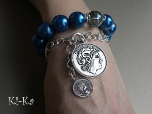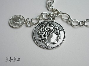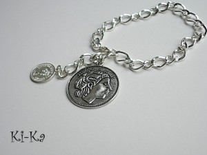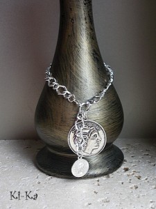 Bransoletka wykonana z elementów metalowych [moneta o średnicy 30mm i 15mm]. Długość regulowana. Biżuteria ozdobnie zapakowana. Bransoletka może stanowić komplet z innymi bransoletkami - przykładowe zdjęcia lub z kolczykami [dostępne w naszej galerii