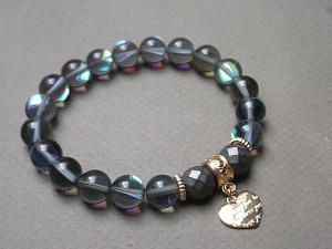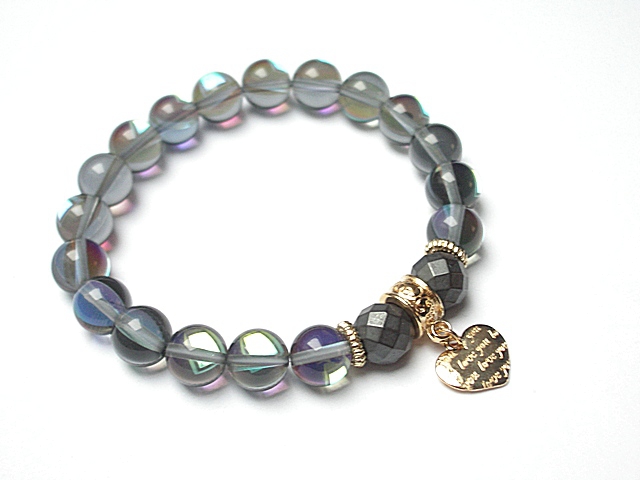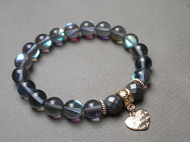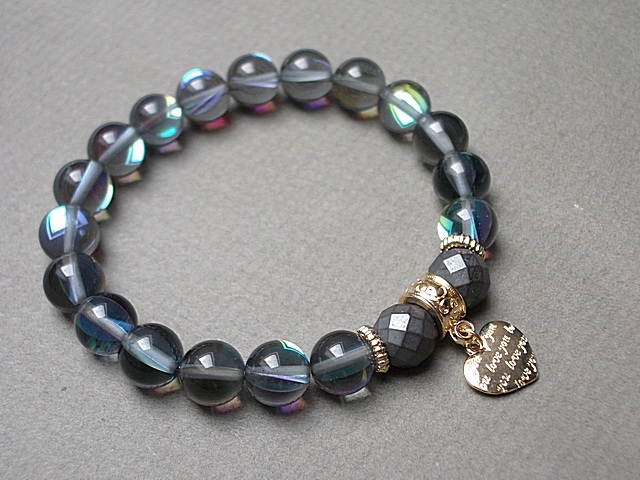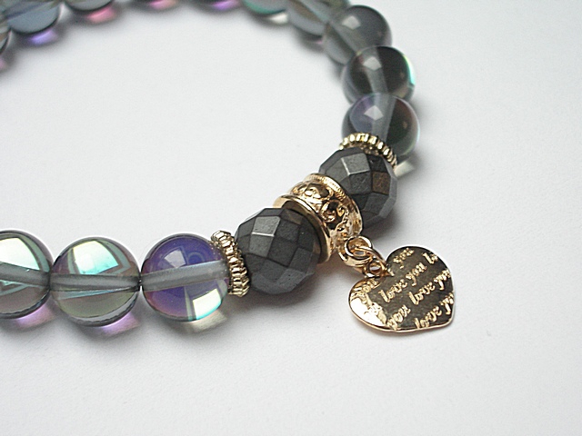 Bransoletka wykonana z naturalnych, minerałów - kwarc mystic [10mm] , hematytu fasetowanego [10mm] oraz elementów metalowych w kolorze tzw. różowego złota Bransoletka na gumce silikonowej. Pasuje na nadgarstek 16-17 Biżuteria ozdobnie zapakowana. Możliwość dopasowania do nadgarstka - wcześniej prosimy o kontakt.