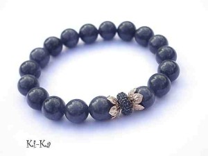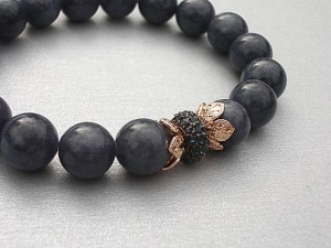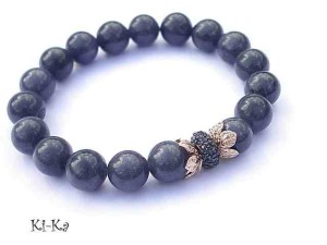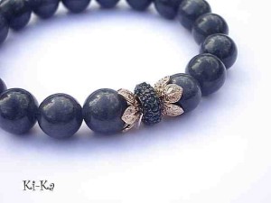 Bransoletka wykonana z naturalnych kamieni- jadeity [10mm], ekskluzywnej przekładki wysadzanej cyrkoniami oraz elementów metalowych w kolorze tzw. różowego złota. Bransoletka na gumce silikonowej. Pasuje na nadgarstek 16-17cm. Biżuteria ozdobnie zapakowana. Możliwość dopasowania bransoletki do nadgarstka - wcześniej prosimy o kontakt.