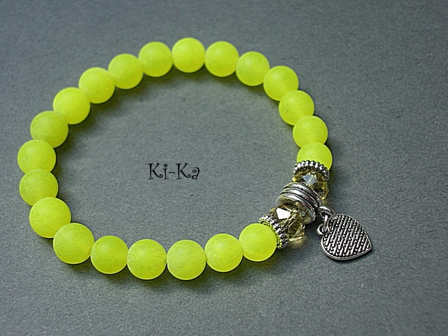 Bransoletka wykonana z kamieni naturalnych - matowe jadeity [8mm], kryształków [6 x 8mm] oraz elementów w kolorze srebra. Bransoletka na gumce silikonowej. Pasuje na nadgarstek 16-17cm. Biżuteria ozdobnie zapakowana. Możliwość dopasowania bransoletki do nadgarstka - wcześniej prosimy o kontakt
