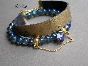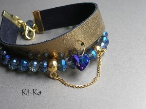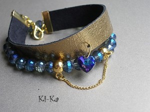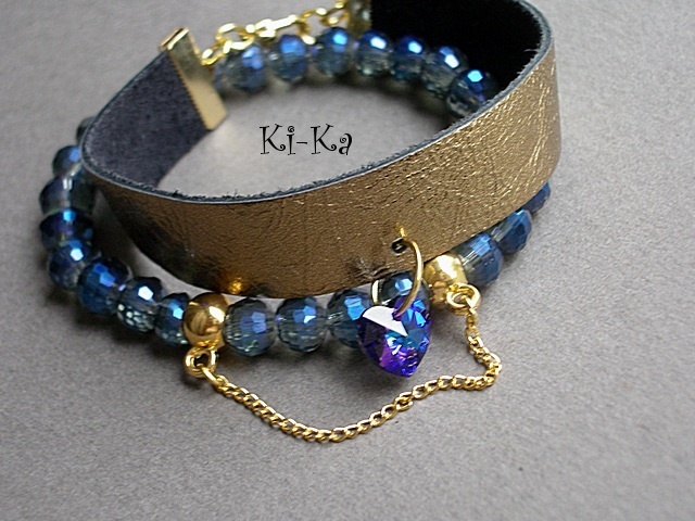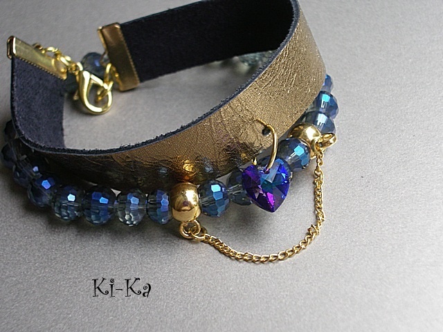Komplet dwóch bransoletek wykonanych z naturalnej skóry [szer. 15mm], fasetowanych kryształków [6mm, szkło bardzo dobrej jakości], kryształkiem Swarovskiego w kształcie serca oraz elementów w kolorze złota. Pasują na nadgarstek 16 - 17cm. Biżuteria ozdobnie zapakowana. Bransoletki mogą stanowić komplet z innymi bransoletkami dostępnymi w naszej galerii.