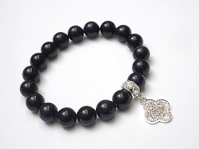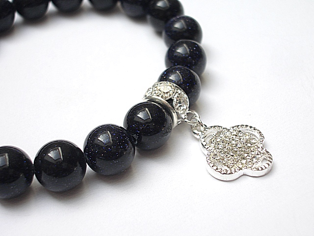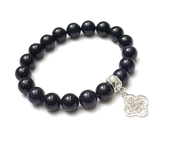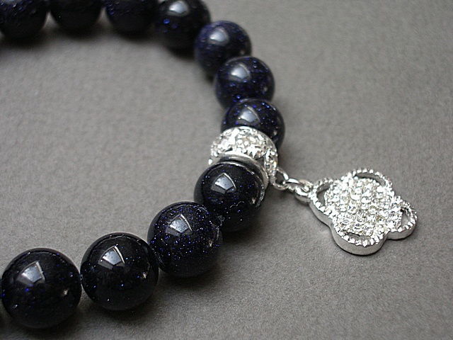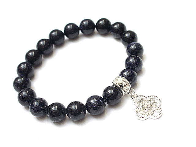 Bransoletka wykonana z kamieni naturalnych - noc kairu [10mm], zawieszki wysadzanej cyrkoniami oraz elementów metalowych w kolorze srebra. Bransoletka na gumce silikonowej. Pasuje na nadgarstek 16-17cm. Biżuteria ozdobnie zapakowana. Możliwość dopasowania bransoletki do nadgarstka - wcześniej prosimy o kontakt.