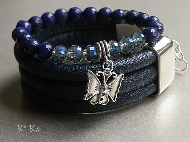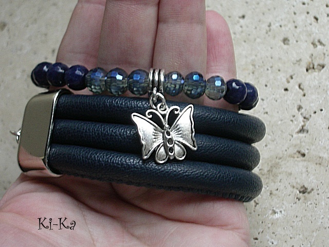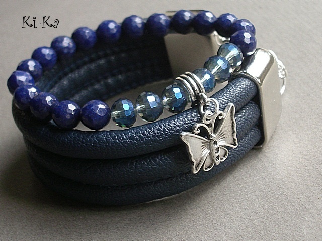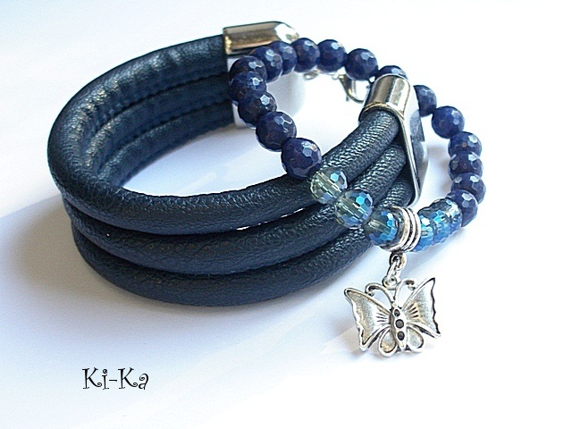 Komplet dwóch bransoletek wykonany z naturalnych minerałów - fasetowane jadeity [8mm] ,szklane kryształki [8mm] , miękki rzemień ze skórki ekologicznej [10mm] oraz elementów w kolorze srebrnym. Bransoletka z minerałów na gumce silikonowej. Szerokość bransoletki z rzemienia -2,5cm.Pasują na nadgarstek 15-16cm. Biżuteria ozdobnie zapakowana.