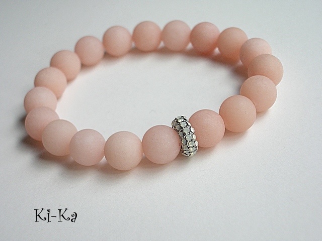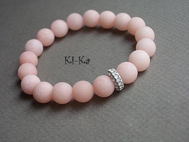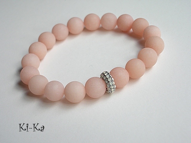 Bransoletka wykonana z naturalnych kamieni - matowy jadeit [10mm] oraz przekładki wysadzanej cyrkoniami. Bransoletka na gumce silikonowej. Pasuje na nadgarstek 15-16,5cm. Biżuteria ozdobnie zapakowana Bransoletka może stanowić komplet z innymi modelami dostępnymi w naszej galerii - przykładowe zdjęcia.