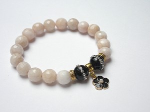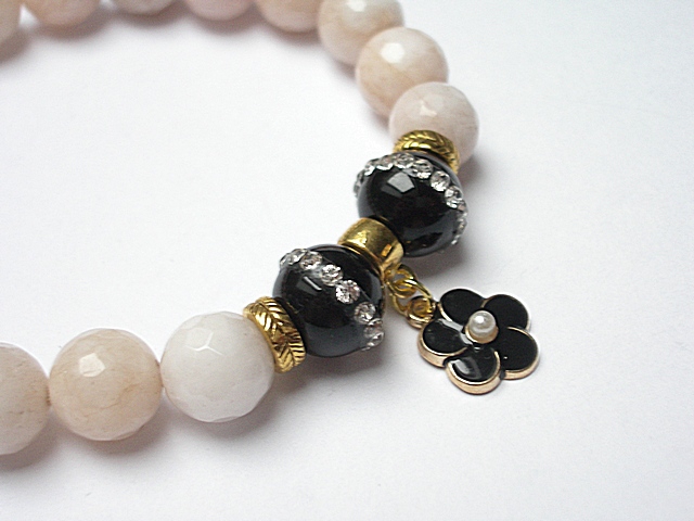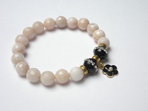 Bransoletka wykonana z naturalnych kamieni - fasetowane jadeity [10mm], agaty wysadzane cyrkoniami [10mm] oraz elementów w kolorze złota. Bransoletka na gumce silikonowej. Pasuje na nadgarstek 16-17cm. Biżuteria ozdobnie zapakowana. Możliwość dopasowania bransoletki do nadgarstka - wcześniej prosimy o kontakt