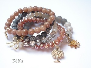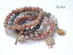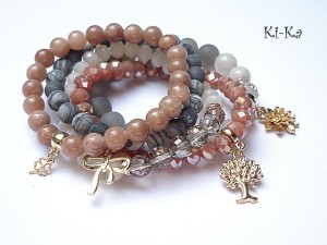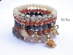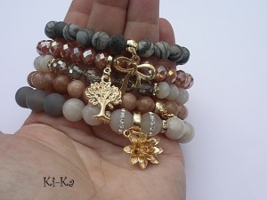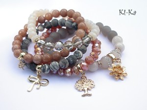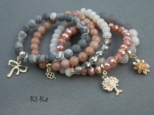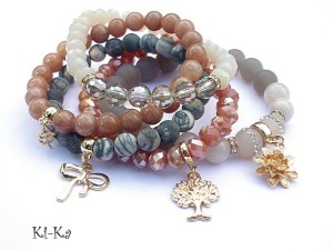 PROJEKT AUTORSKI. WSZELKIE INNE PODOBNE MODELE TO KOPIE NARUSZAJĄCE PRAWA AUTORSKIE. Komplet pięciu bransoletek wykonanych z naturalnych kamieni: jaspis matowy [8mm], agaty matowe [10mm], agaty wysadzane cyrkoniami [10mm], jadeity [10mm] krysztalków [8 x 6mm oraz elementów metalowych w kolorze tzw. różowego złota. Bransoletki pasują na nadgarstek 15,5 - 16,5cm. Biżuteria ozdobnie zapakowana