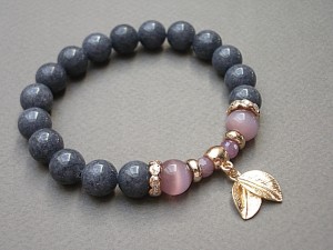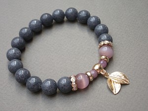 Bransoletka wykonana z kamieni naturalnych - rubiny fasetowane [6mm], jadeity [10mm], uleksyt [10mm] oraz elementów metalowych w kolorze tzw. różowego złota Bransoletka na gumce silikonowej. Pasuje na nadgarstek 16-17cm. Biżuteria ozdobnie zapakowana. Możliwość dopasowania bransoletki do nadgarstka - wcześniej prosimy o kontakt.